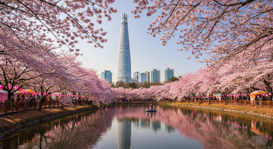 ✨ 특징: 롯데월드타워 배경으로 벚꽃 감상, 야경이 특히 예쁨!